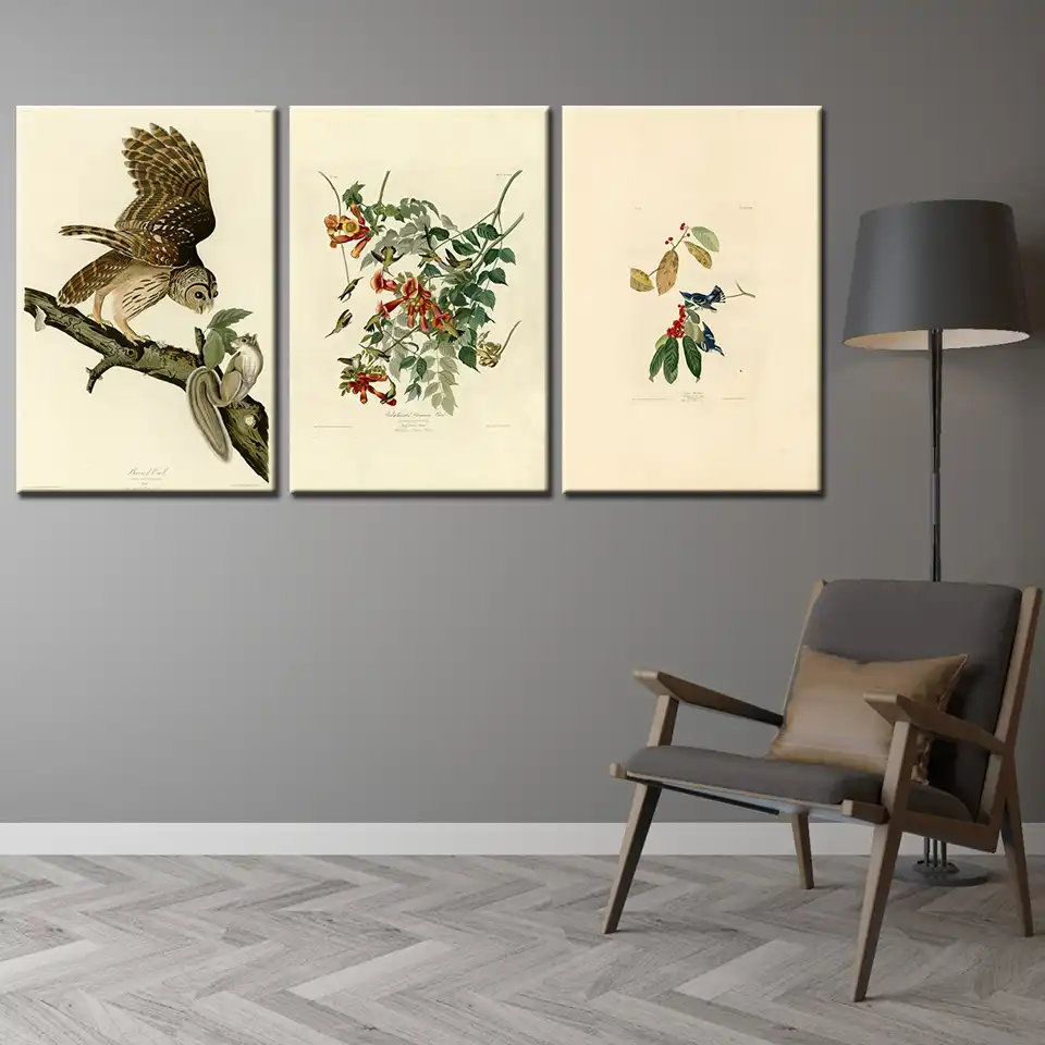 3 paneles HD lienzo pintura planta y búho nórdico minimalista carteles fotos pared arte Modular fondos de pantalla para decoración para sala de estar|Pintura y caligrafía| - AliExpress