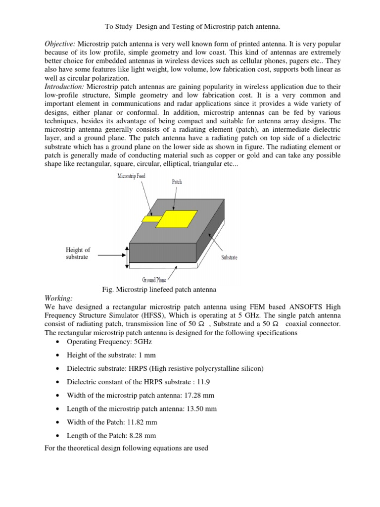 . Microstrip Antennas: The Patch Antenna Gain Enhancement of Rectangular Microstrip Patch Antenna Designed for Exposure System Using Microstrip Array - Docsity 5G MIMO Conformal Microstrip Antenna Design
