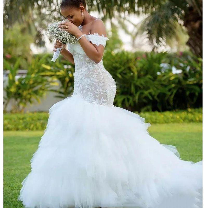Elegant African Black Girls Mermaid Wedding Dresses With Lace Tiered Ruffled Bridal Party Gown Off Shoulder Women Wedding Gowns From Bridalparty 150 06 Dhgate Com