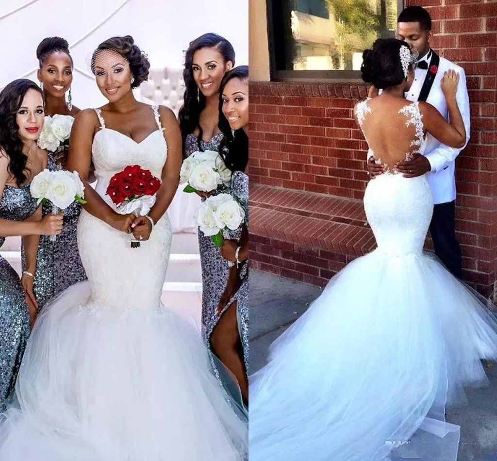 Black Girls Mermaid Wedding Dresses Lace Appliques Spaghetti Straps Bridal Gowns Backless African Sexy Vestido De Novia Misszhu Bridal Online Store Powered By Storenvy